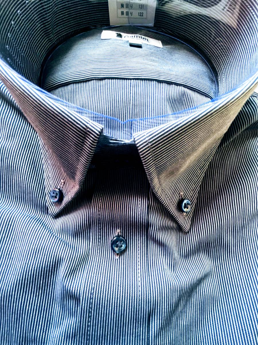> 3Lサイズ!高貴紳士的!ブランド品!Gambit!形態安定!吸水速乾!半袖ボタンダウンワイシャツ!ネイビー系色合い!×白!極細ストライプ柄