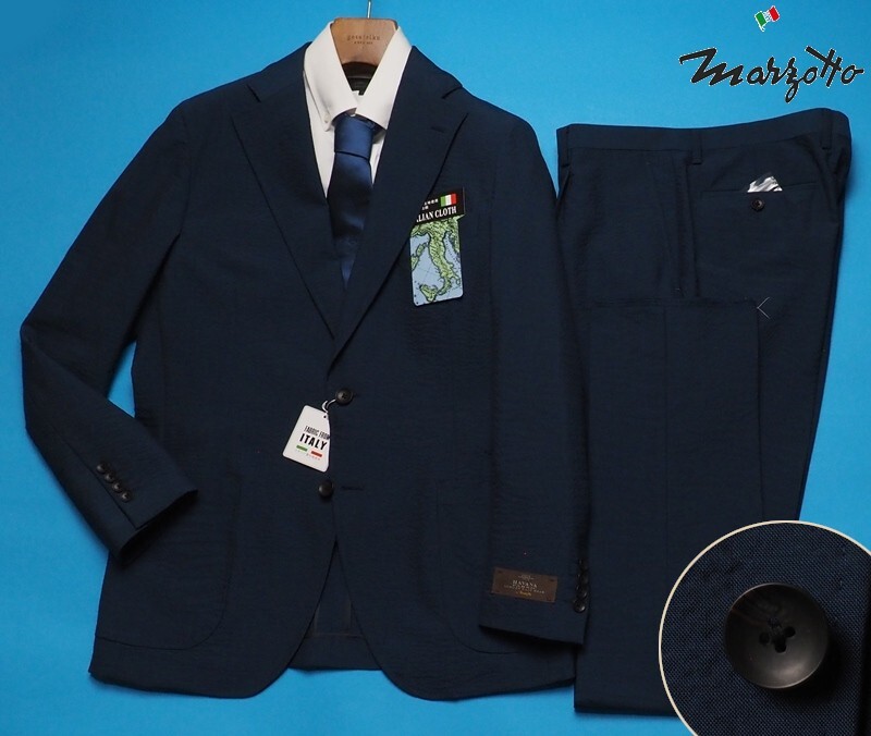 - 新品8.6万円 大手百貨店扱い 春夏『MARZOTTO マルゾット イタリア製生地』 シアサッカー 無地 セットアップ スーツAB4青紺(F) 1636491