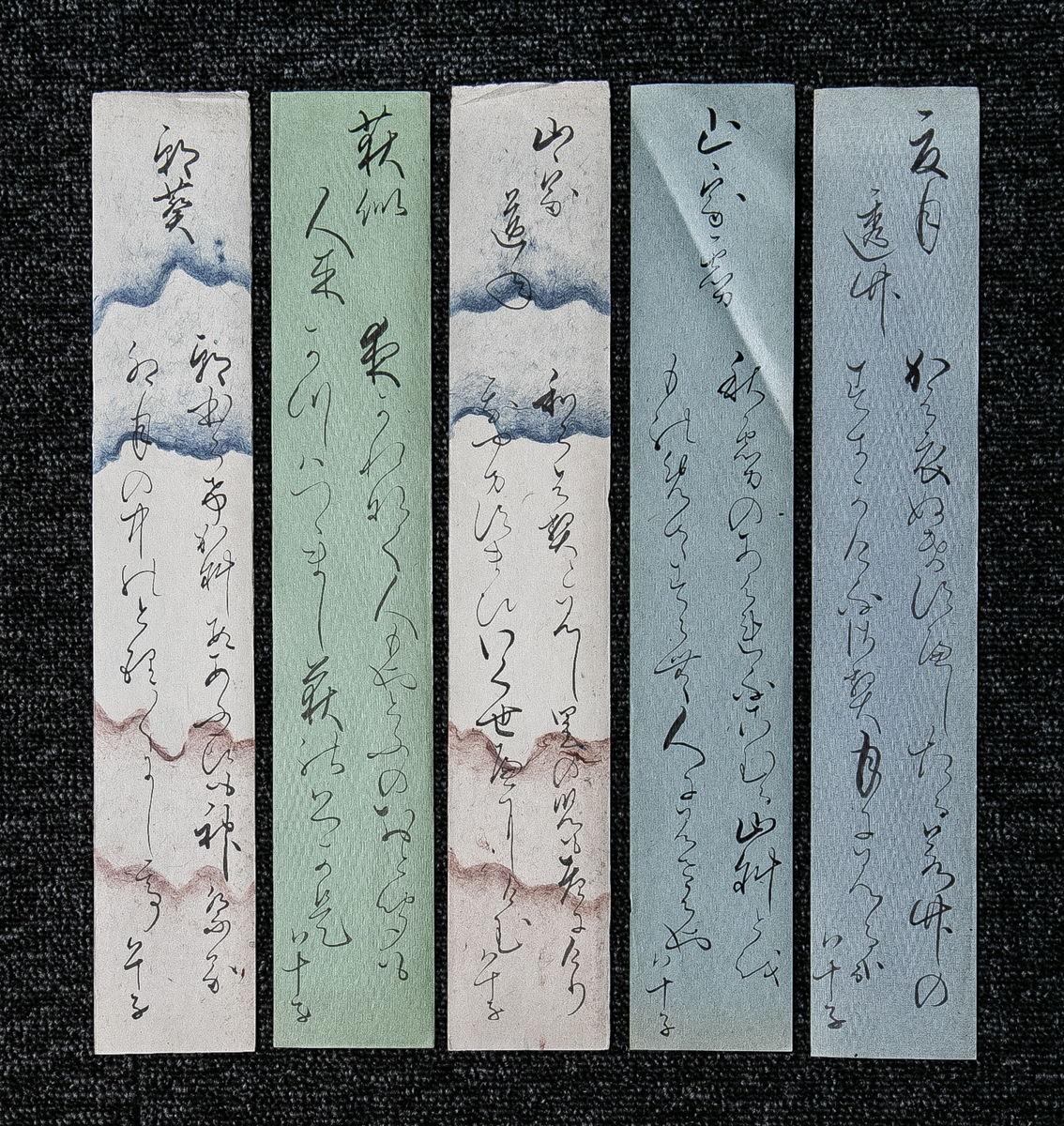 - 短冊-2322 間宮八十子 短冊五葉 薄手の短冊 幕末明治期の国学者 久米幹文の姉【真作】