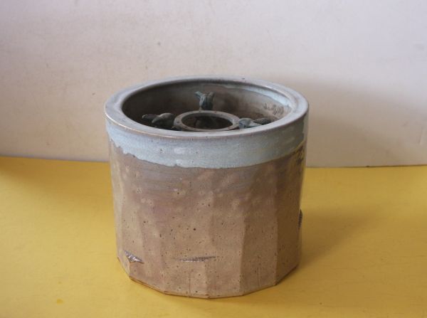 - レトロ 陶器製 火鉢 手あぶりひばち 鉄製うさぎの五徳付き 灰入り サイズ:外径31×H26㎝ /25N3.6-31