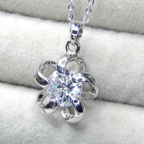 > 残り1点★新品★送料無料 フラワー CZダイヤモンドネックレス 極大粒 キュービックジルコニア シルバー レディース ペンダント レディース
