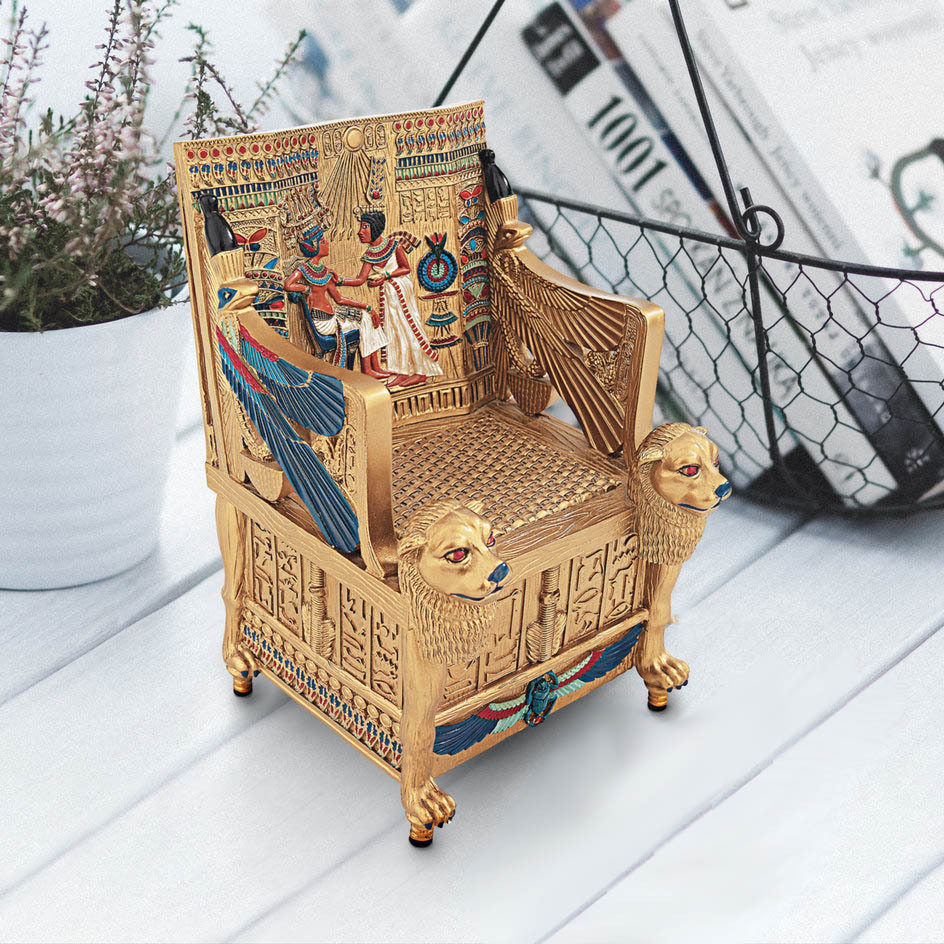 > ツタンカーメン王の黄金の玉座レプリカ彫像 古代エジプトの宝箱箱彫刻 アートBOX ピラミッド 贈り物(輸入品