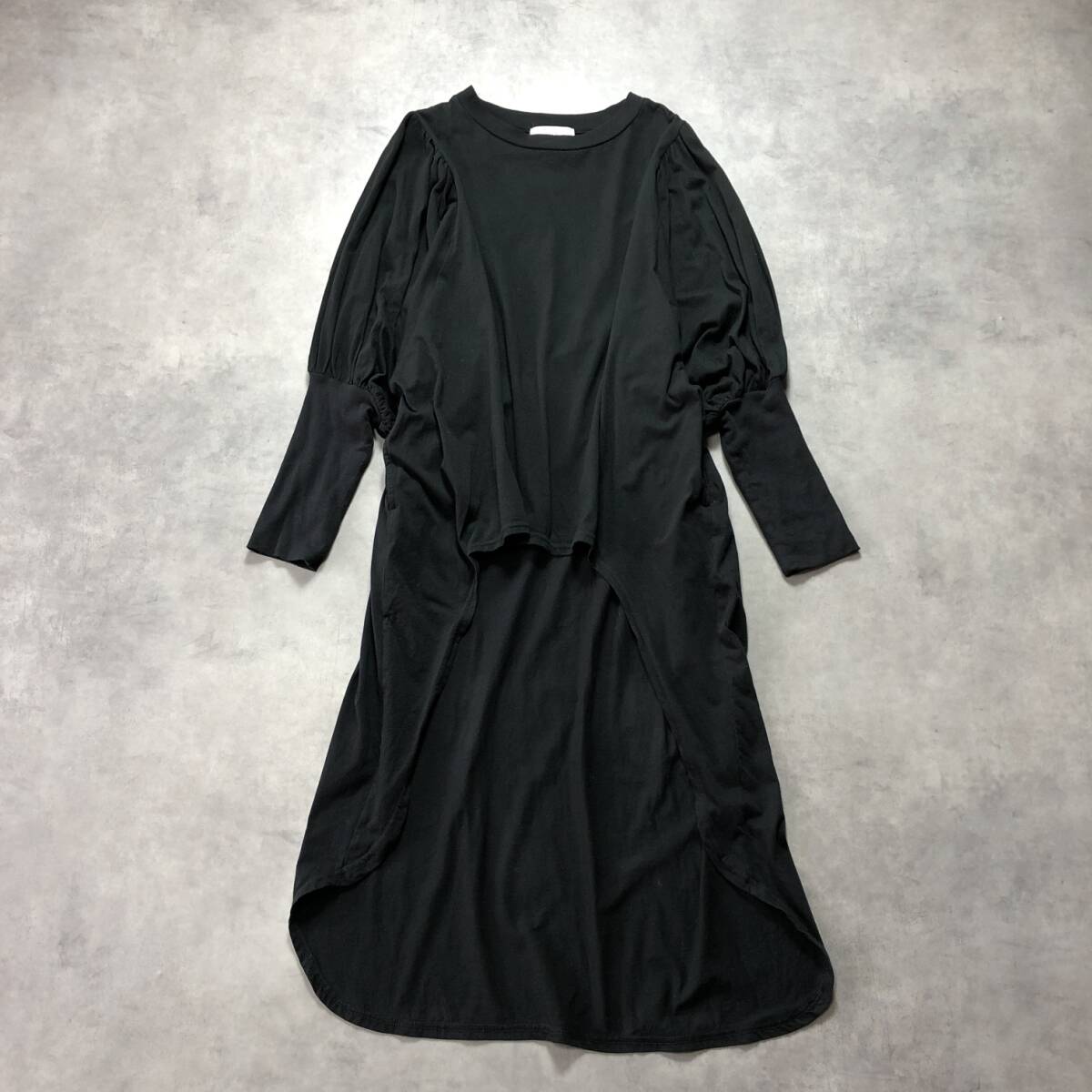 - WQ379●ME.TO:ボリュームスリーブアシンメトリーワンピース ●1● 黒 メト ドルマンスリーブ 日本製