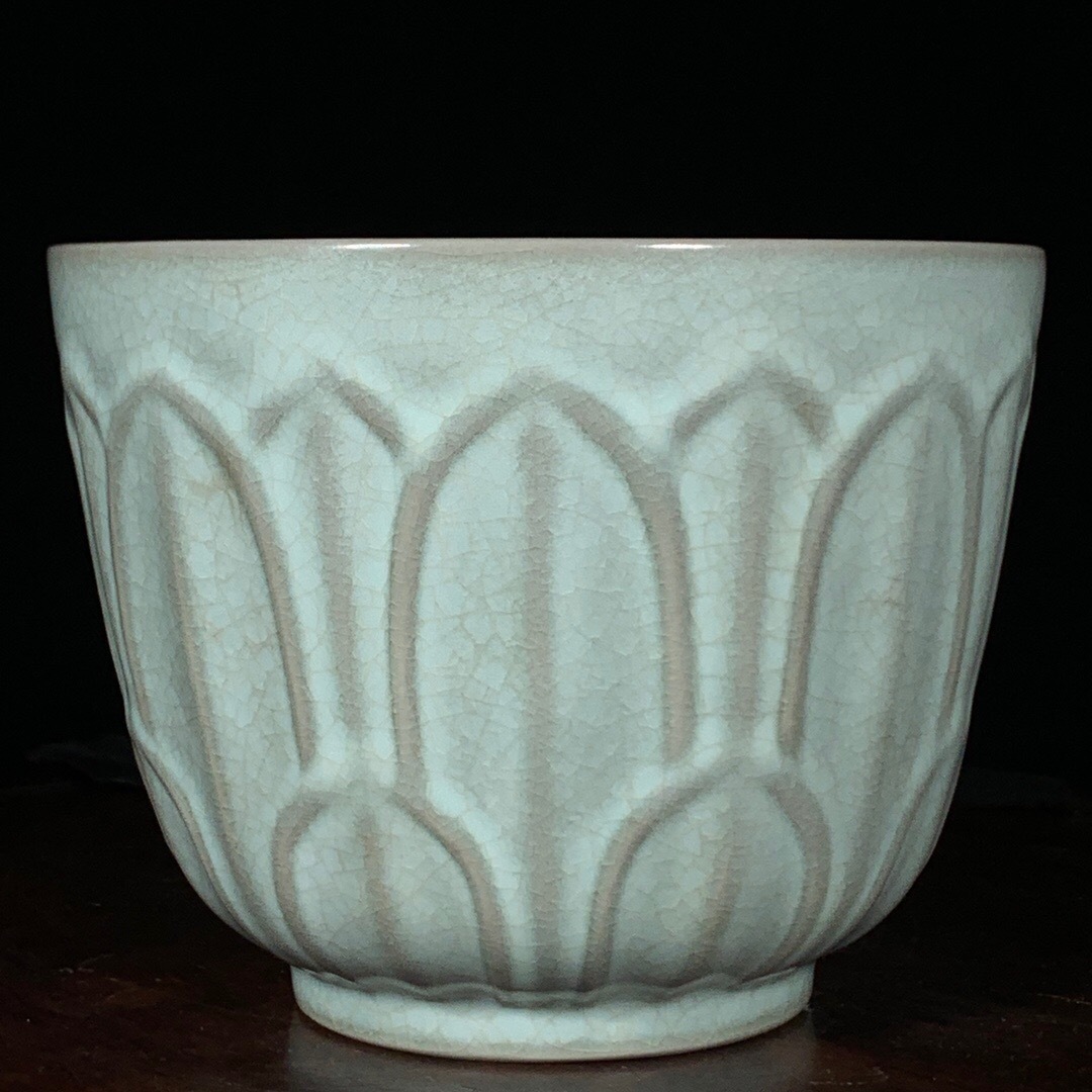 - 【超珍館蔵】宋 古陶瓷品 汝窯 冰裂紋 花紋碗 陶藝 古賞物 古董品 古美術品 時代物 旧家蔵出 稀少珍蔵品