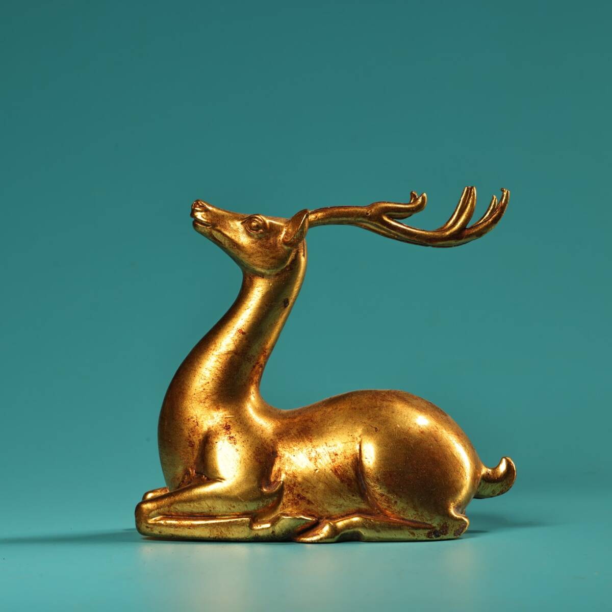 - 清 古銅流金彫 鹿 一路生花 古擺件 時代物 古董品 骨董 旧家蔵出し 唐物 中国古玩 古美術品