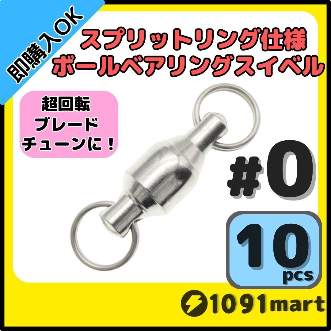 - 【送料150円】ボールベアリングスイベル スプリットリング仕様 #0 10個セット ジグスピナースピナーベイトスピンテールブレードチューンに