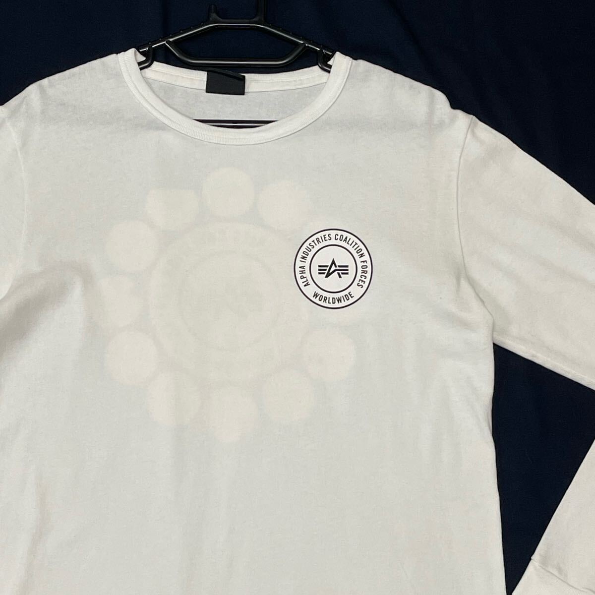 - ALPHA INDUSTRIES ロンT 長袖Tシャツ バックビッグロゴ アルファ インダストリーズ WORLD WIDE デカロゴ ミリタリーTシャツ 早5370