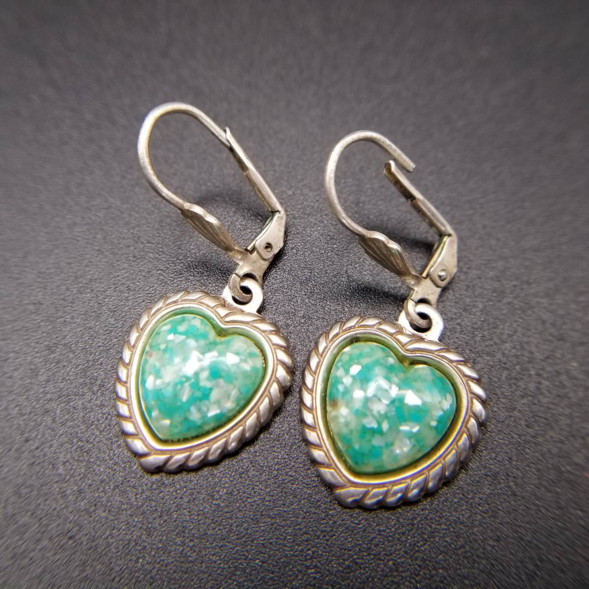 > 可憐 ハート スターリングシルバー ヴィンテージ フックピアス 銀 イヤリング ブルー/ホワイト マーブルカラー 夏色 揺れるチャーム 7Y-B