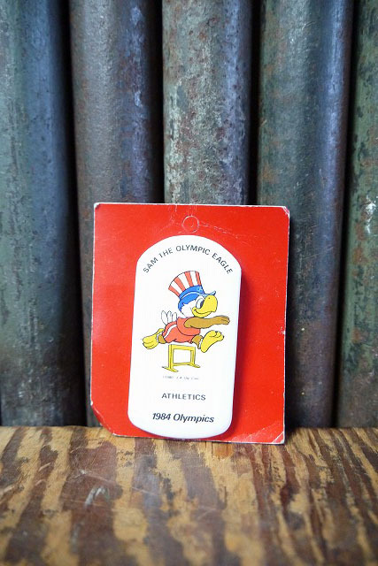 > ビンテージ1984LosAngelesOlympics缶バッチA [goe406]検アメリカロサンゼルス雑貨コレクションノベルティ雑貨古着イーグルキャラ