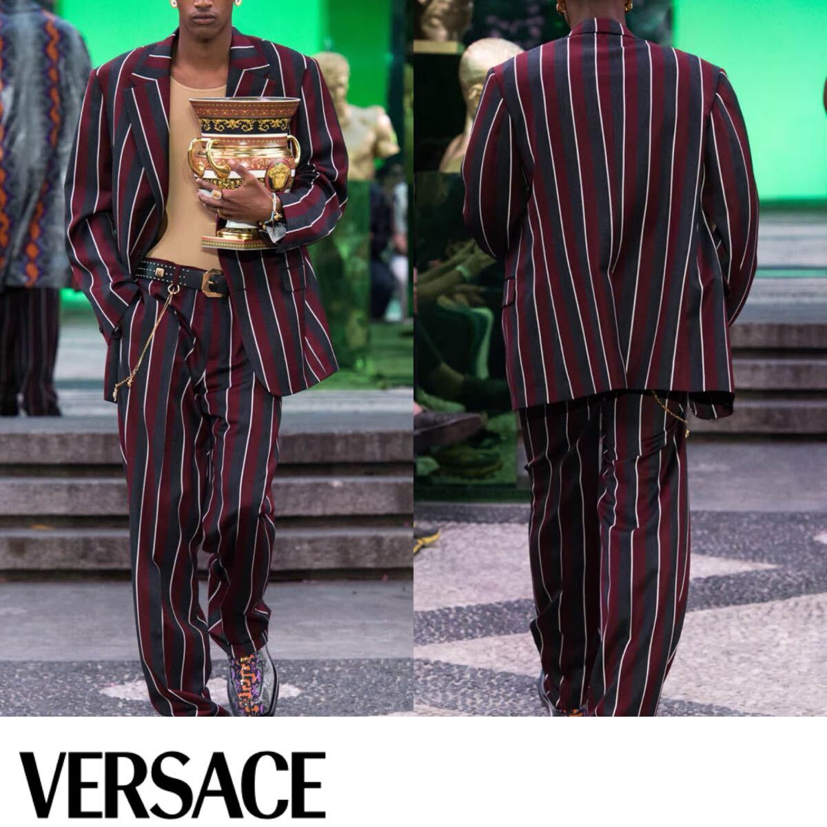 - VERSACE ヴェルサーチェ新品 レジメンタル ストライプ ジャケット スクールジャケット 46