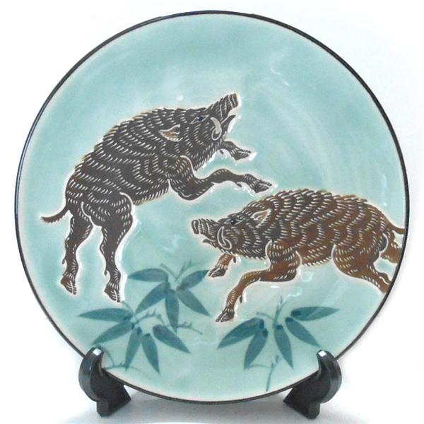 - 九谷焼★秀峰 飾皿 干支 猪文様