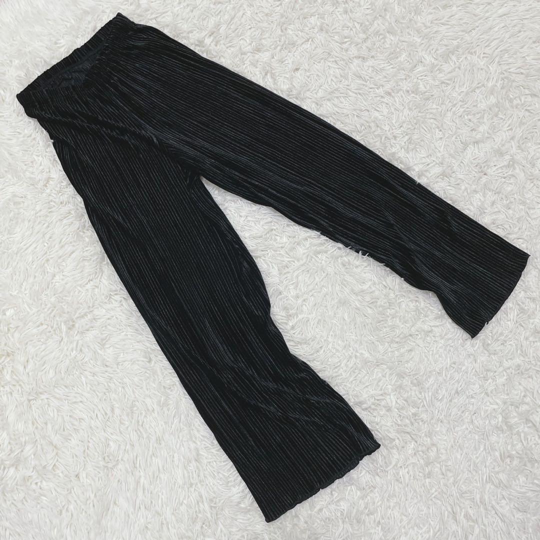 - 『ハラダ株式会社』 (M) プリーツイージーパンツ ストレート 光沢 脚長効果