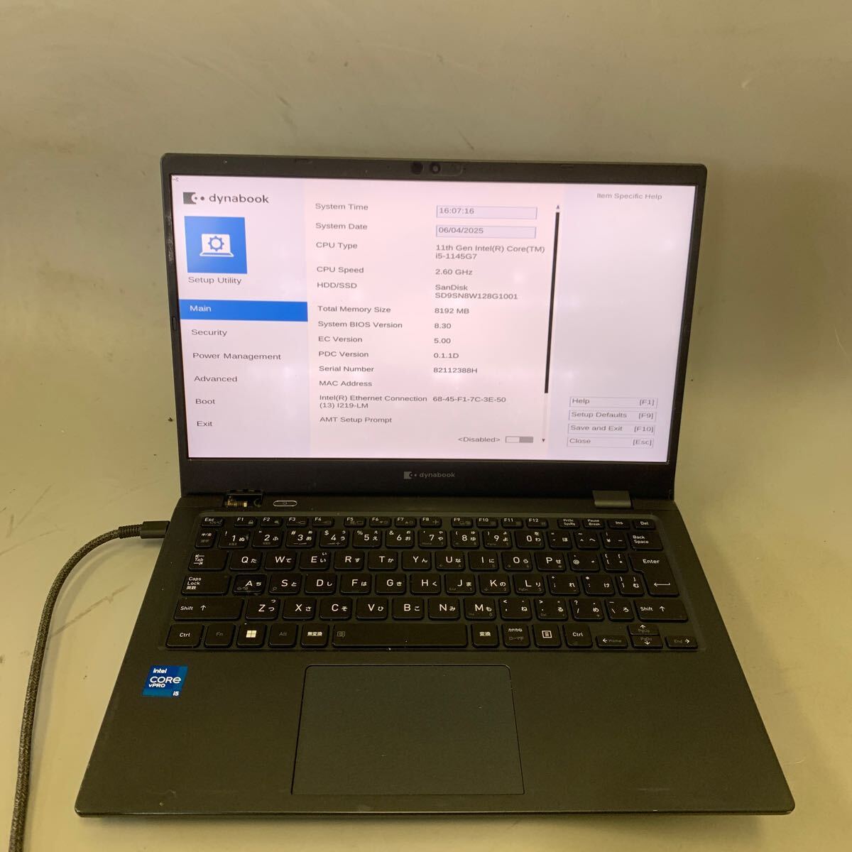- JK6908 Dynabook G83/HU /Core i5-1145G7 2.60Ghz/メモリー:8GB/SSD:128/BIOS確認/外観破損あり、シミ