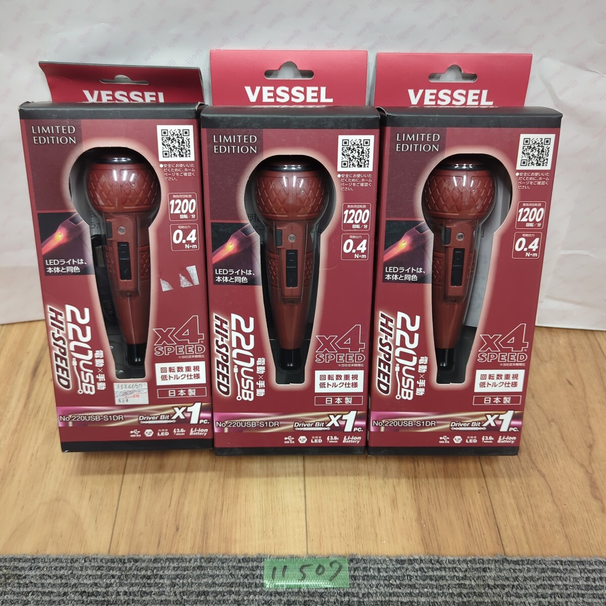 > ゆ11507 未使用 3台まとめて VESSEL ベッセル 限定色 電ドラボール ハイスピード 220USB-S1DR ボールグリップ