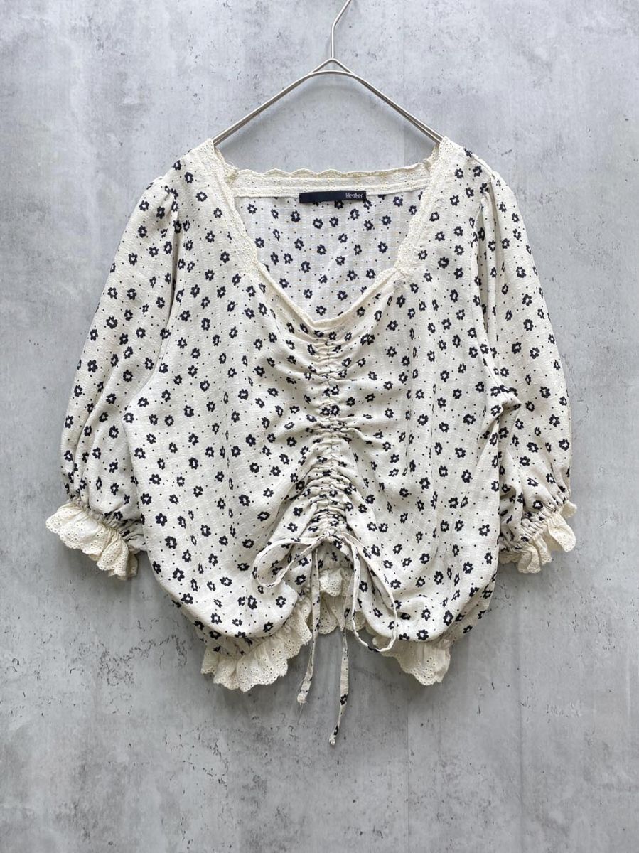 - ゆうパケットOK Heather ヘザー 花柄 フロントシャーリング 半袖 ブラウス カットソー sizeF/ベージュ ■◆