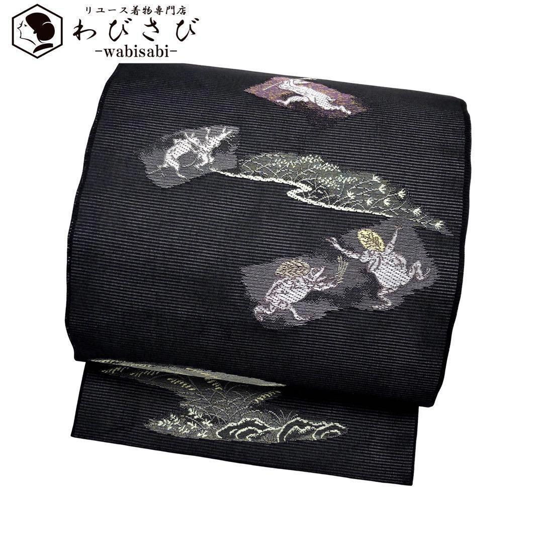 - 夏帯 名古屋帯 絽 西陣 沢本織物 鳥獣戯画 証紙付 黒色 O-2833 着物 きもの kimono 和服 和装 中古 リサイクル着物 【送料無料】