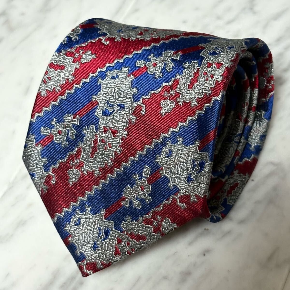 - 【未使用に近い】 999円~ LANVIN ネクタイ ストライプ レッド グレー ネイビー (B6)