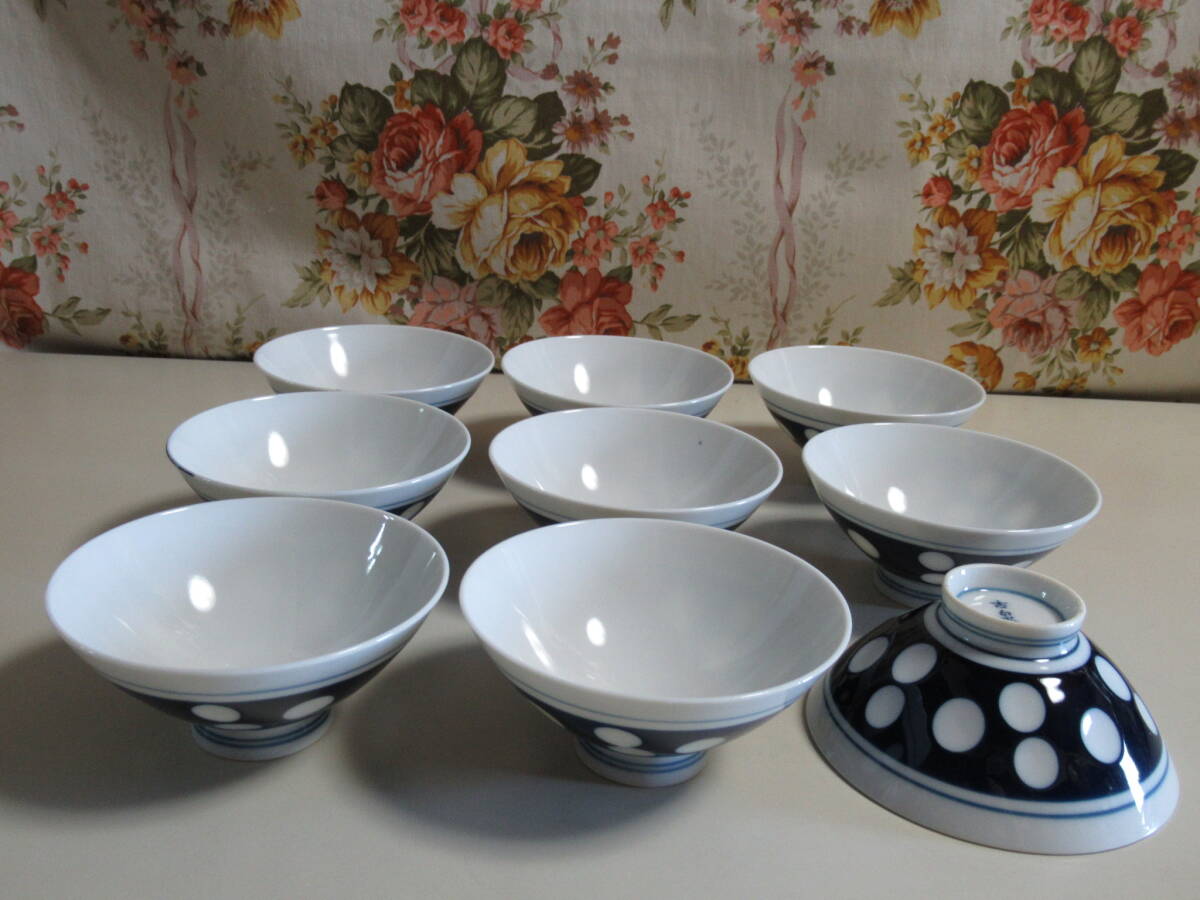 - R7 06★レトロ 水玉 茶碗 飯碗 9個【古泉】
