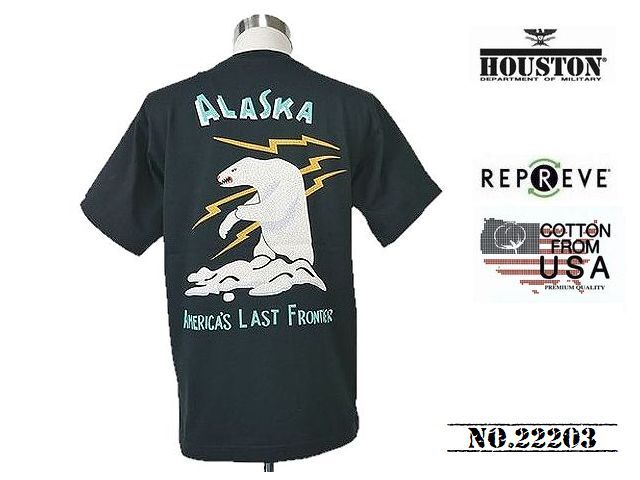 > 【送料無料 34%OFF】HOUSTON ヒューストン リサイクルUSAコットン プリントTシャツ 「ALASKA」 NO.22203 BLACK_Lサイズ