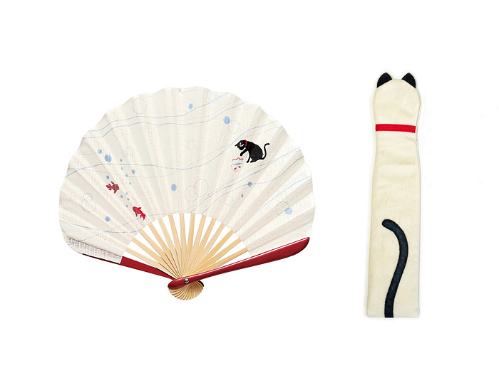 - 扇子セット涼あそび ベージュ ねこ扇子 ネコ好き 猫柄 ねこ刺繍 夏小物 エコ 竹扇子 布扇子 綿生地扇子 カジュアル扇子 涼感 飛沫対策