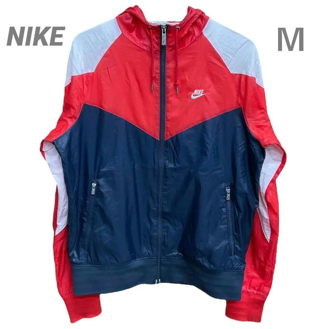 - NIKE メンズナイロンパーカー 赤×紺 M 運動 スポーツ 軽量【1012】
