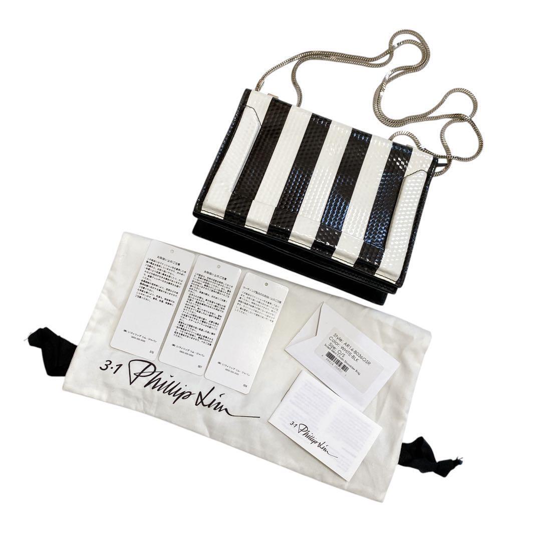 - 美品 3.1Phililp Lim ショルダーバッグ チェーン ストライプ 黒白 肩掛け 斜め掛け