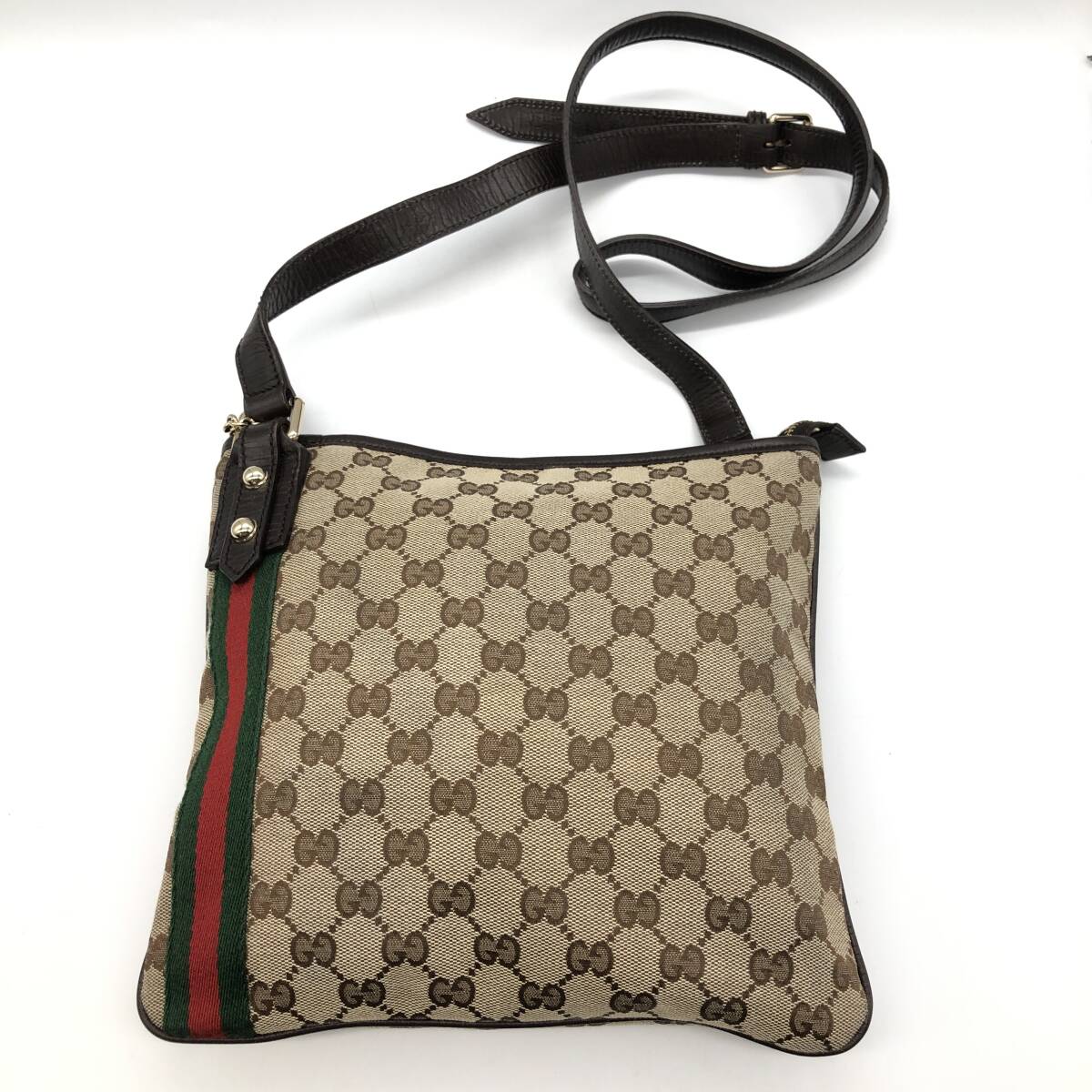 > 【外観美品】GUCCI 14388・213317 ショルダー バッグ GGキャンバス シェリーライン ロゴ チャーム付 鞄 カバン グッチ