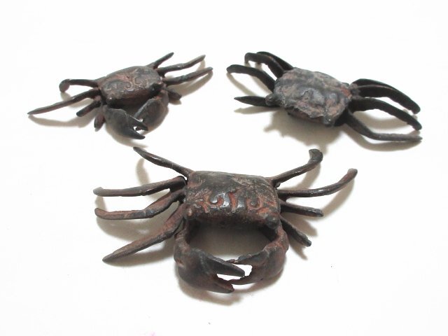 - Y475◇ 古銅 彫刻 蟹 蓋置 大中小 全長9.5~10.5cm // 計3点 // かに カニ 柄杓置 茶道具 骨董品 インテリア / 現状渡し