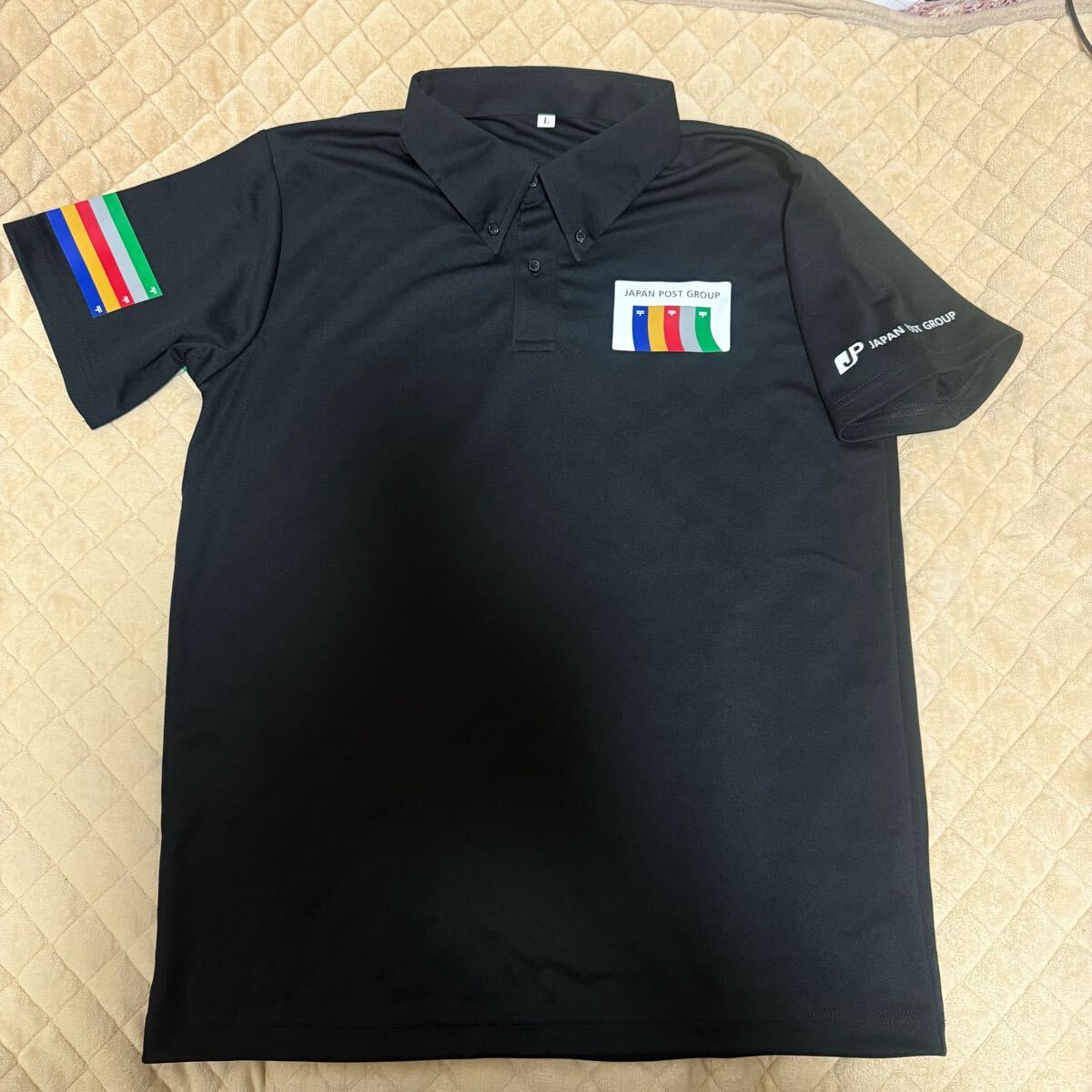 - 非売品 企業モノ 日本郵便 郵便局 日本郵政 ドライ メッシュ 半袖 ポロシャツ ブラック L 黒