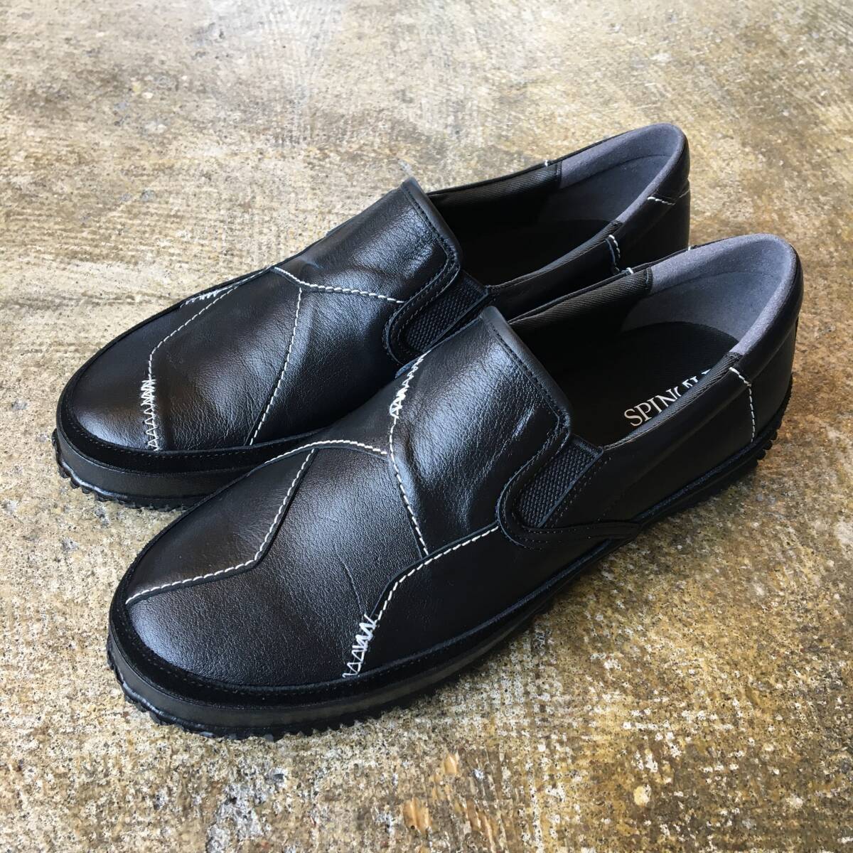 - M サイズ (25.5cm) | スピングル SPINGLE SP-1044 黒 ブラック 刺し子 ステッチワーク 靴 スリッポン Japan 日本製 (新品)(正規品)
