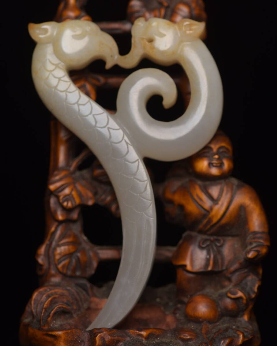 - 【超珍館蔵】和田玉製 細密彫 龍鳳呈祥 置物 賞物 古賞物 古董品 古美術品 時代物 旧家蔵出 稀少珍蔵品