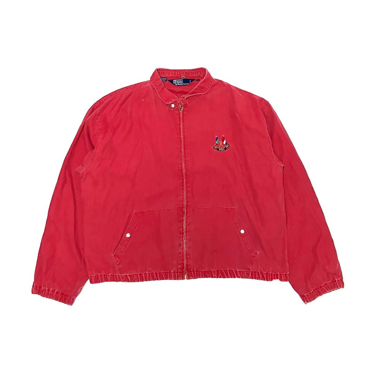 > XL 80’s ポロ ラルフローレン コットン スイングトップ クロスフラッグ 赤 レッド 刺繍 80年代 スウィングトップ ライトアウター Polo