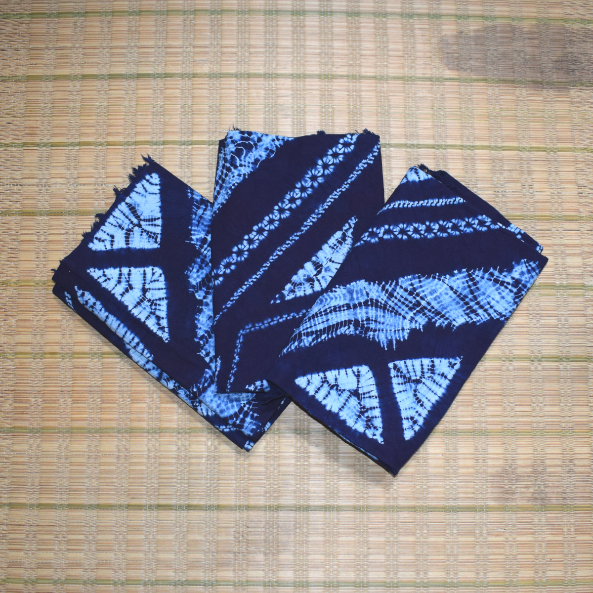 > 藍染 同柄三枚セット テーブルクロス フリンジ タペストリー マルチカバー 横幅約102cm 縦幅約100cm 綿 【kk15-3】