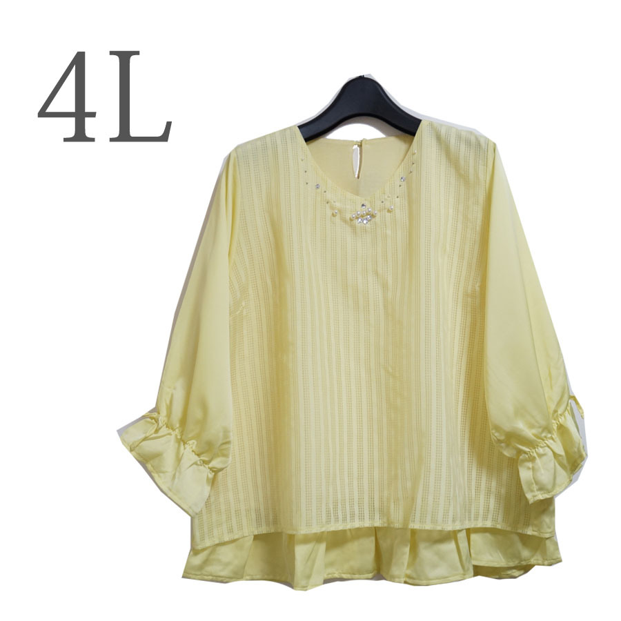 - ●新品/プルオーバー/ブラウス/ビジュー/裾フリル/4L/レディース●x0015