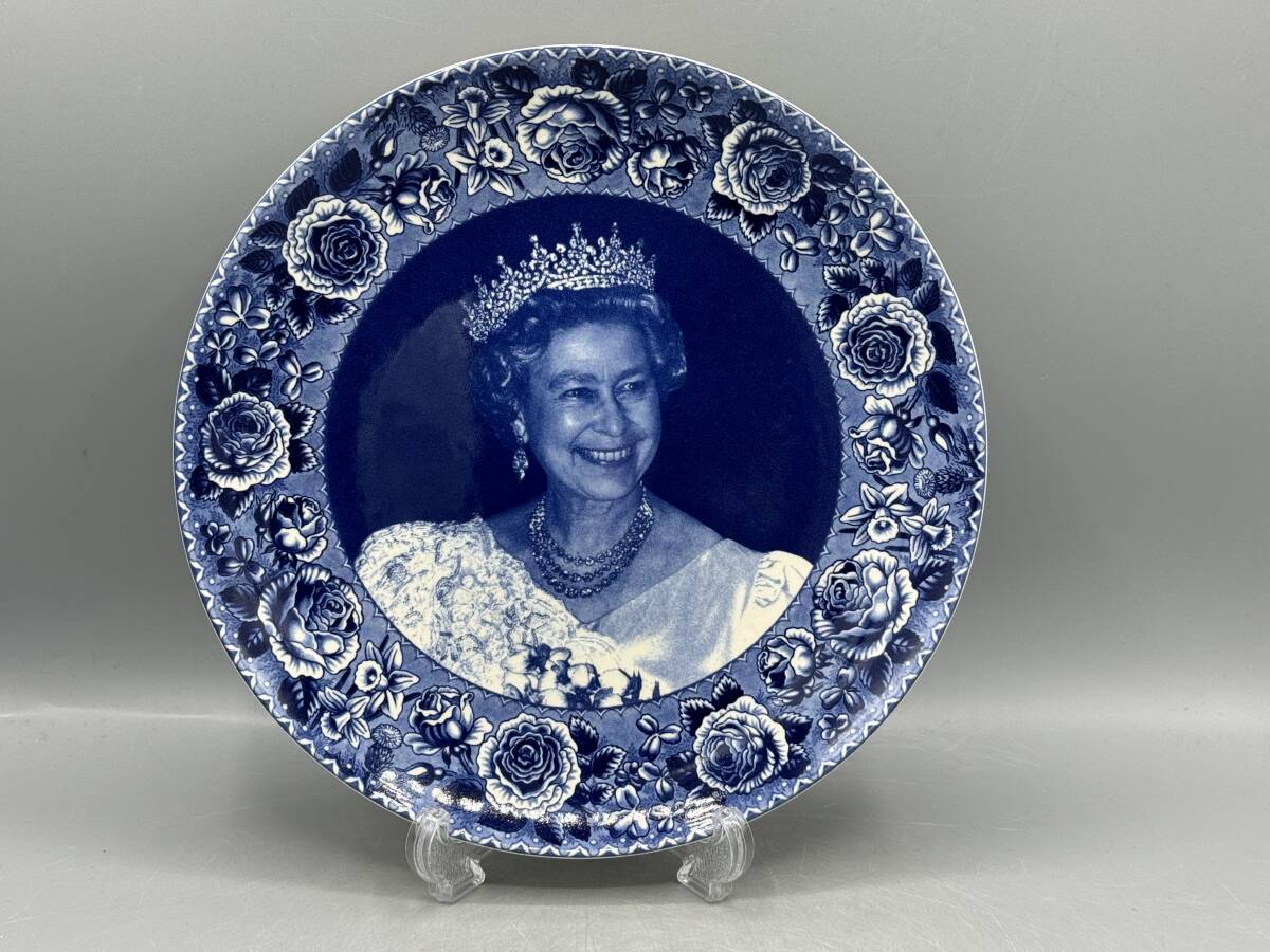 > 英国 ウェッジウッド クイーンズウェア ゴールデンジュビリー エリザベス女王 皿 女王即位50周年記念 ロイヤルファミリー (#-15)