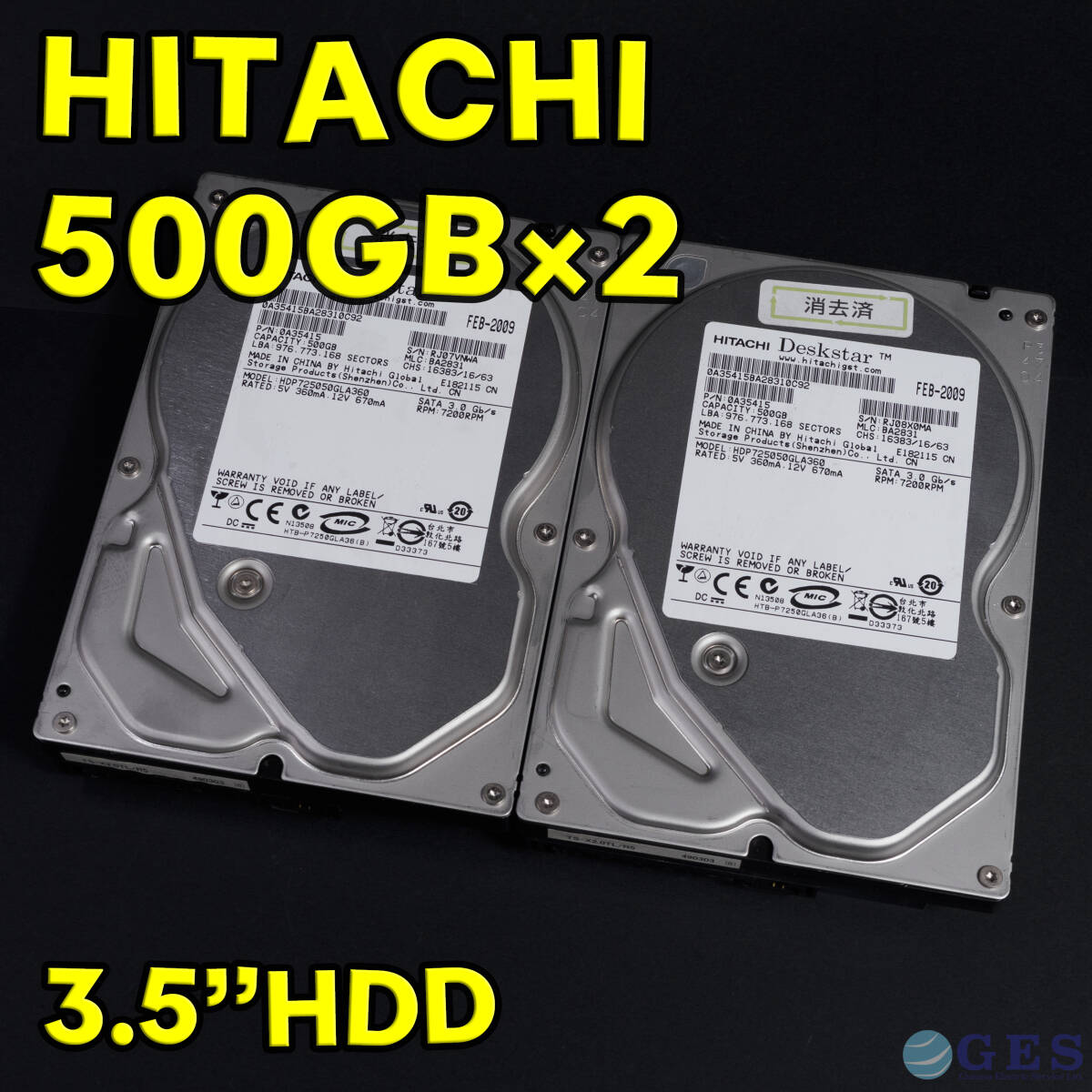 - 【HG500-A1/A2(m)】Hitachi 3.5インチHDD 500GB HDP725050GLA360【2台セット/中古品(超経年個体)】