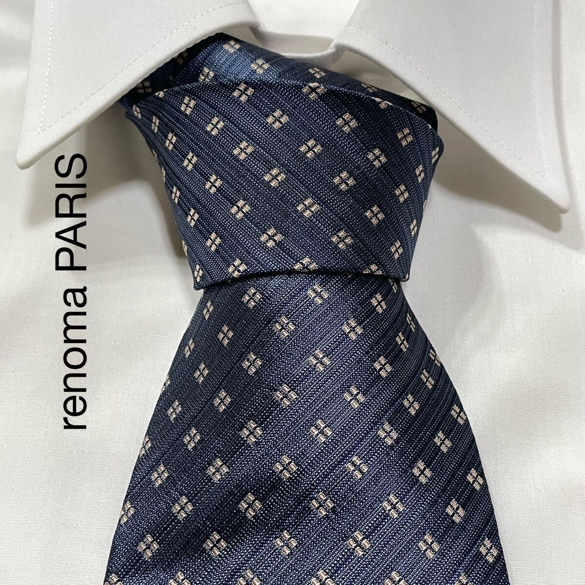 - renoma PARIS レノマパリス パターン柄 ストライプ ジャガード ネクタイ 日本製 ネイビー TG1689