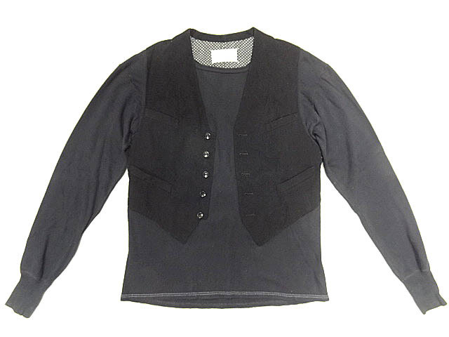 > マルタンマルジェラ 0 10 フランス製 初期 アーティザナル カットソー スーツ ベスト ドッキング デザイン ロンT 黒 ここのえ マルジェラ