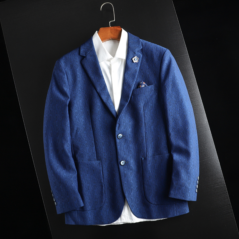 > 新入荷XL紺色 新品 テンセル混 防シワ ラードジャケット メンズ 軽量 通気 立体裁断 薄めの肩パッド 薄手 細身 春夏 ビジネス ブレザー