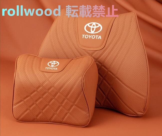 - 新作 トヨタ 首枕 高級革 ネックパッド 腰クッション 高品質 車用 背もたれクッション ネックピロー ヘッドレスト★オレンジ★