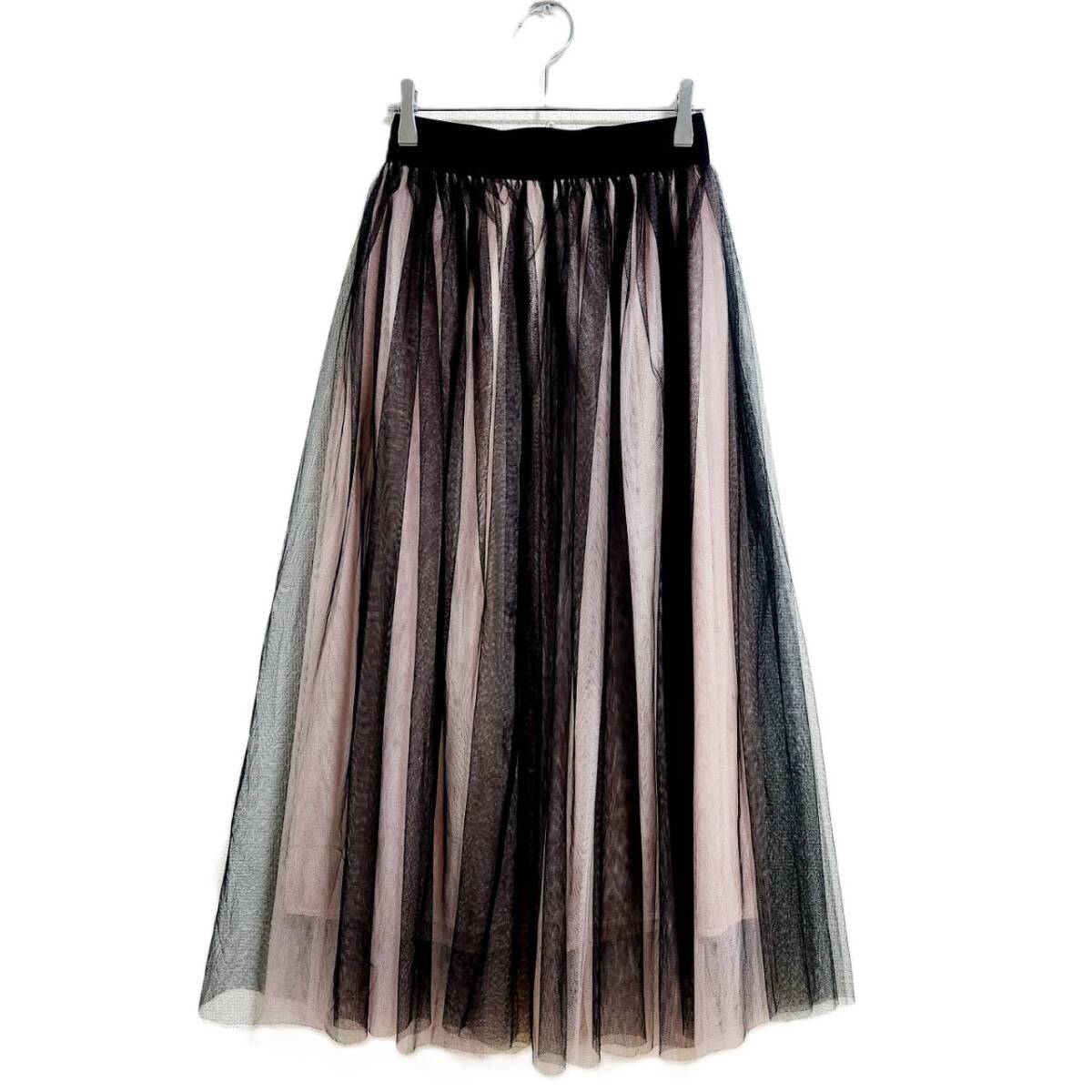 - ロングスカート チュール 黒 ピンク M ウエストゴム カジュアル おしゃれ
