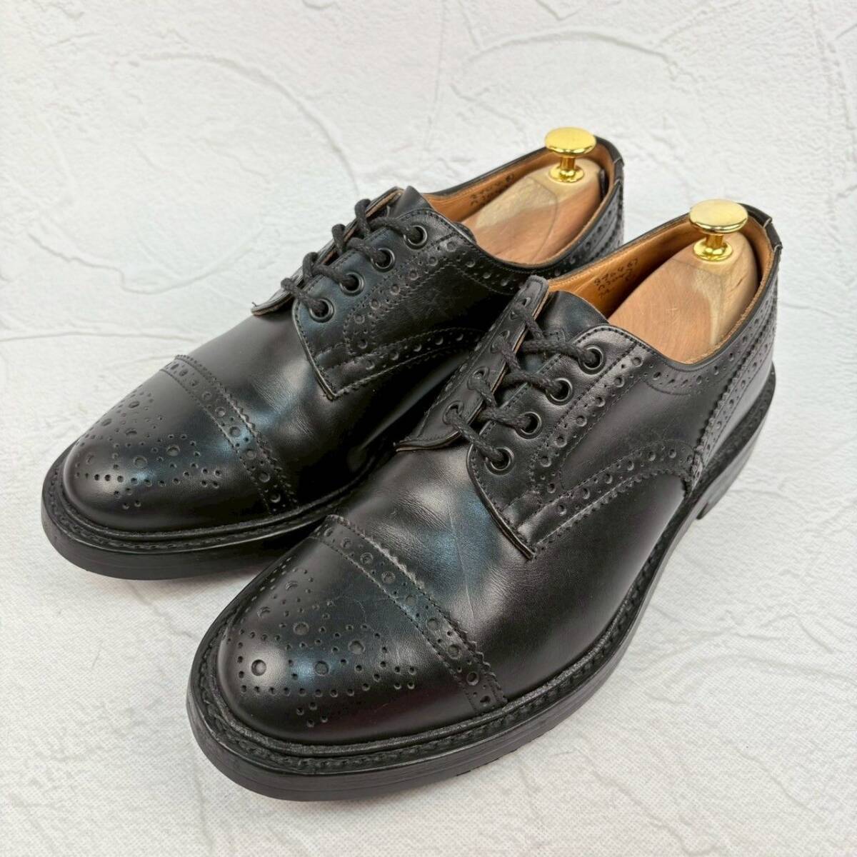 > 【美品】Tricker’s トリッカーズ M7047 メダリオンキャップ 外羽根 黒 ブラック UK7.5 / 26cm きれいめ カジュアル ドレス ビジネス