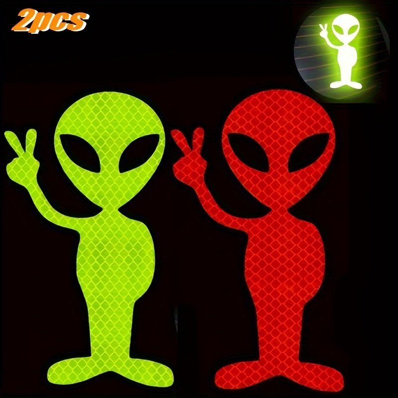 - 2枚セット ステッカー ピースするエイリアン 車用 シール 15cm 宇宙人 蛍光 反射 ビニール 緑 赤 防水 かわいい 2D 窓用ステッカー t6812