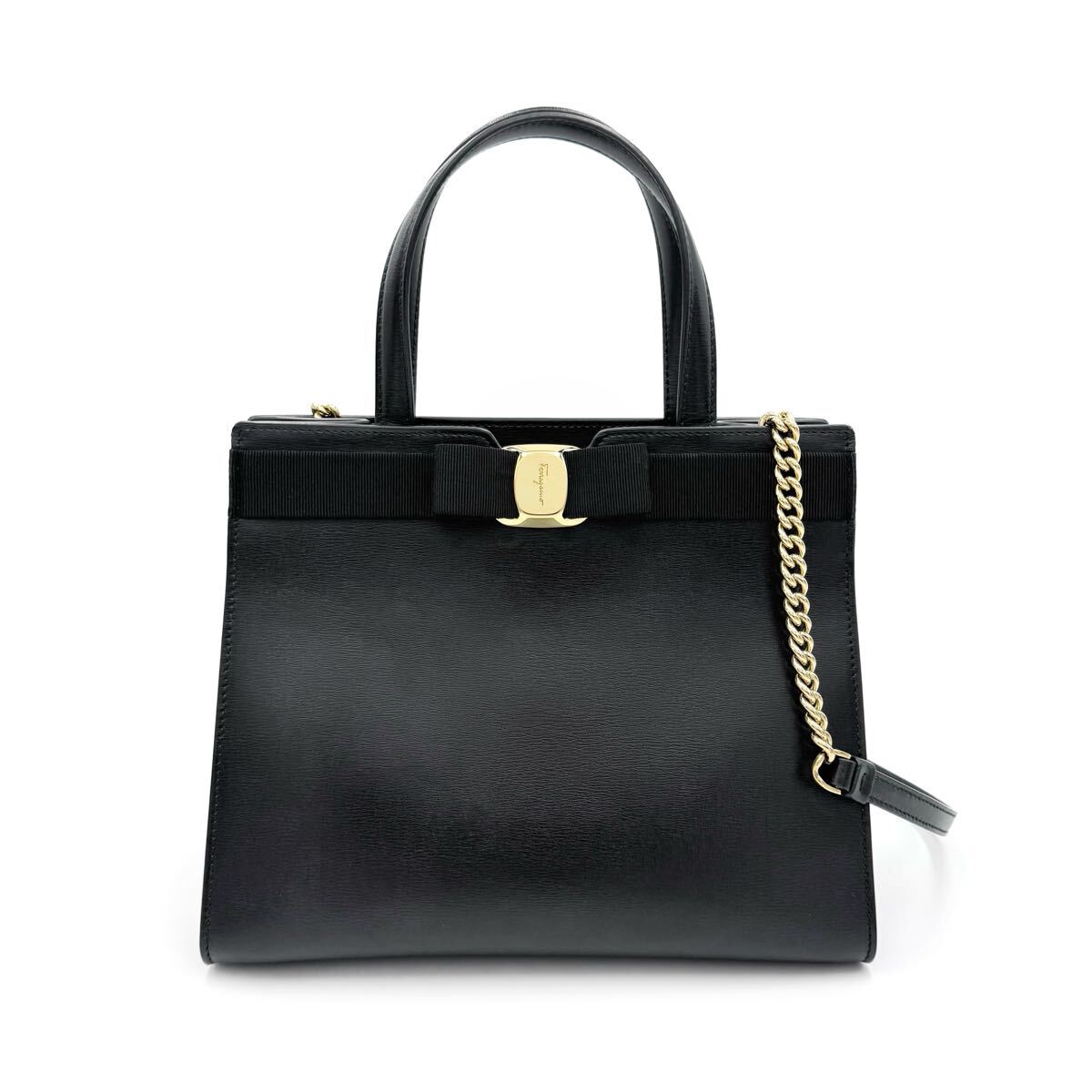- フェラガモ ヴァラ トップハンドル ハンドバッグ 2way チェーン ブラック