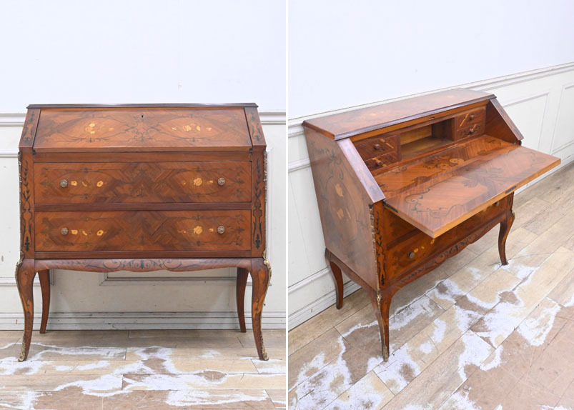 - KC10 上級品 イタリア製 本象嵌 真鍮飾 クラシック ライティングビューロ 机 デスク 鏡台 ドレッサー 整理タンス チェスト アンティーク調