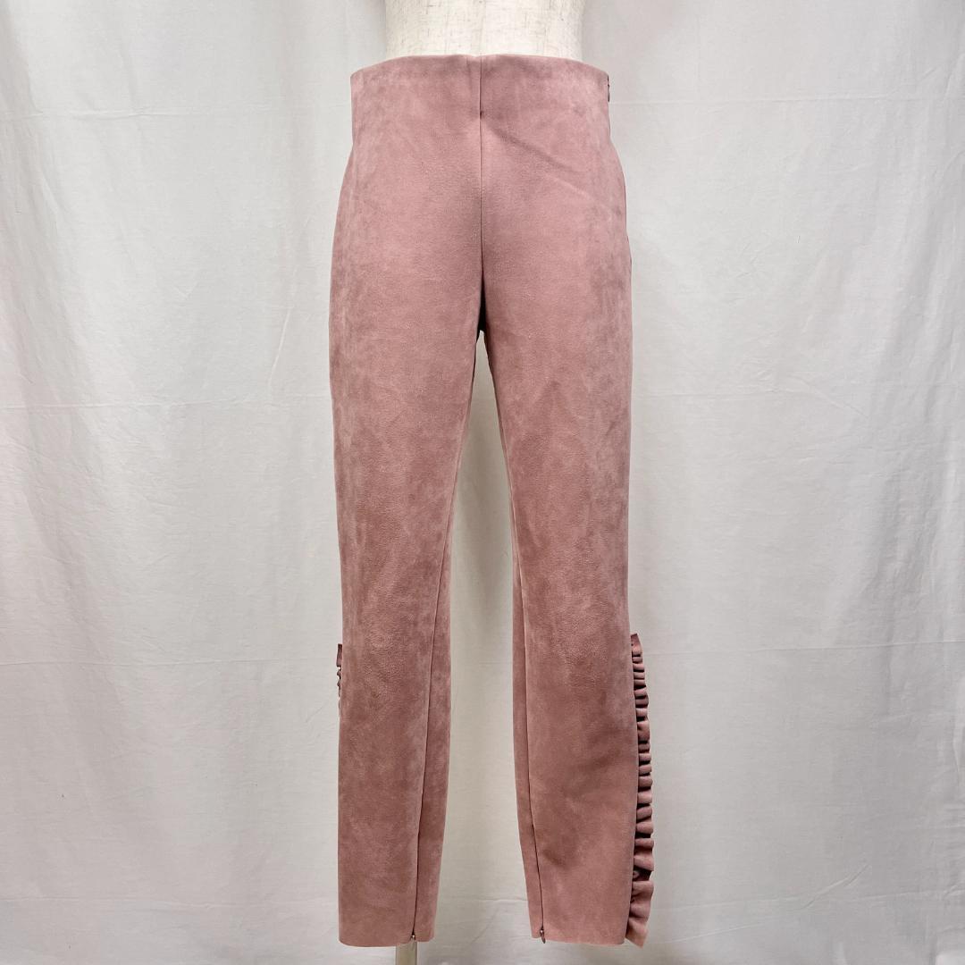 > 【2128】ZARA BASIC ザラ S ピンク エコレザーパンツ スエード調 裾フリル 伸縮性あり スキニー フェイクスエード フェイクレザー