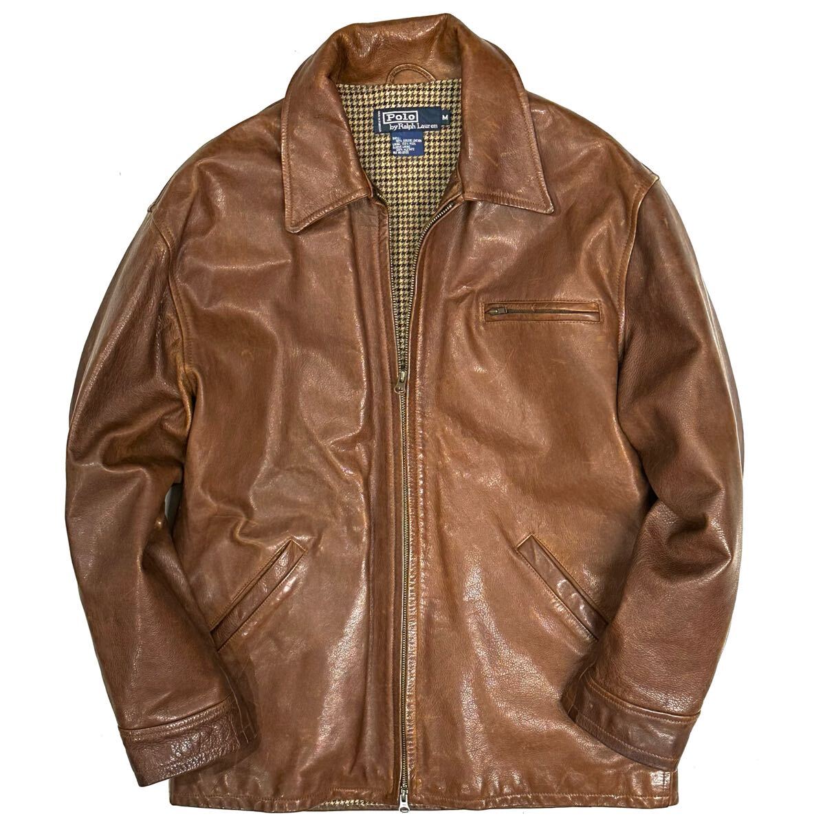 > 希少!! 90's POLO Ralph Lauren 肉厚 牛革 レザー ジャケット(M)ブラウン 茶色 メンズ アウター ポロ ラルフローレン ビンテージ