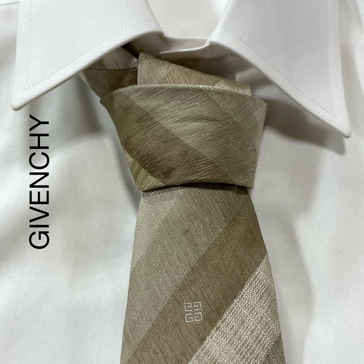 - GIVENCHY ジバンシー ストライプ シルク ネクタイ イタリア製 ベージュ ライトブラウン TG1810