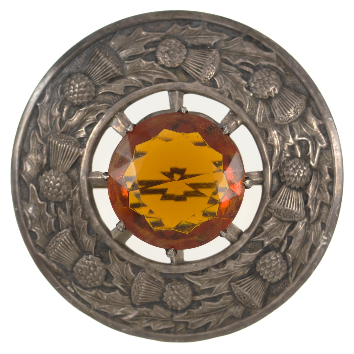 - UK3874◆【MADE IN BRITAIN】◆ 大型 ラウンド アンバー系ストーン アザミの花 フラワーモチーフ ◆ ヴィンテージブローチ ◆ ケルト 英国