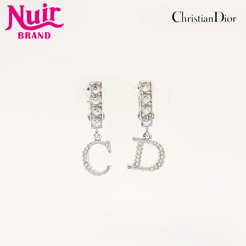 - クリスチャンディオール Christian Dior イヤリング ラインストーン CD ロゴ スイング シルバー